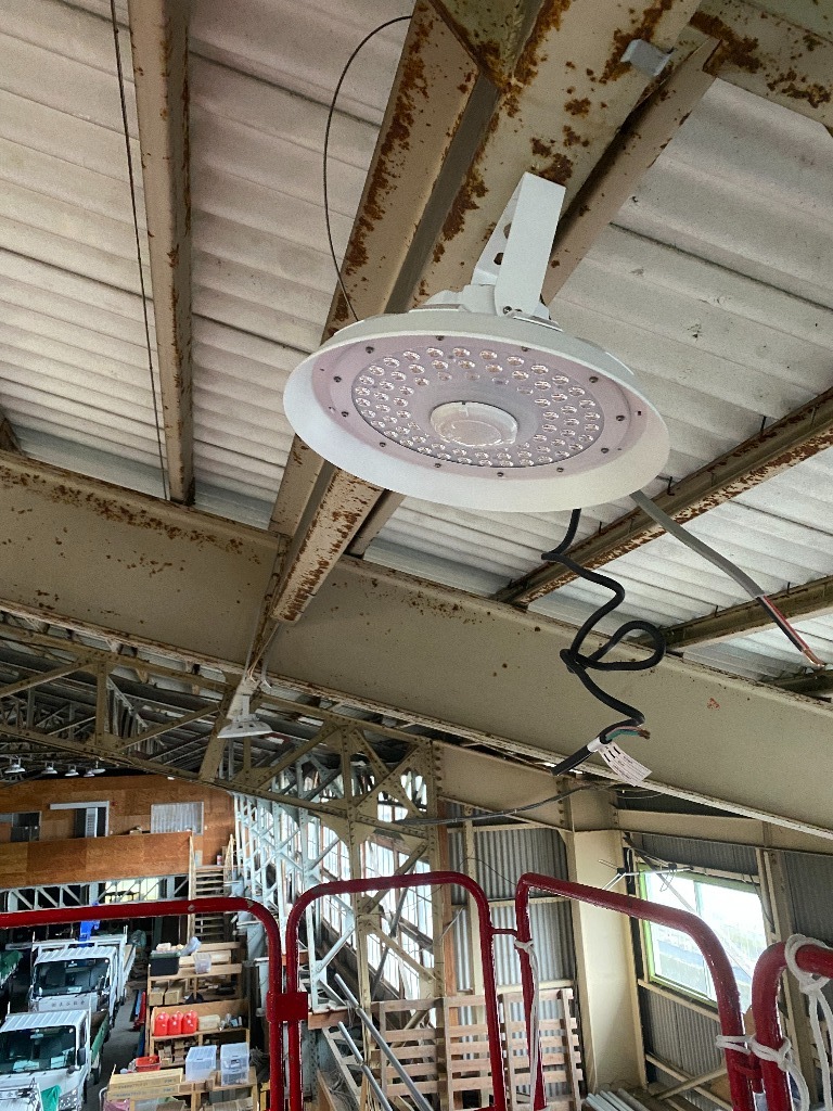 お客様の依頼でLED10個設置を行いました。天井高8メートルあり時間がかかりましたが無事に設置完了しました。